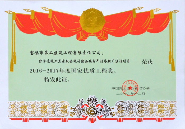 國家優(yōu)質(zhì)工程獎 (施耐德西安電氣設(shè)備新廠建設(shè)項目)