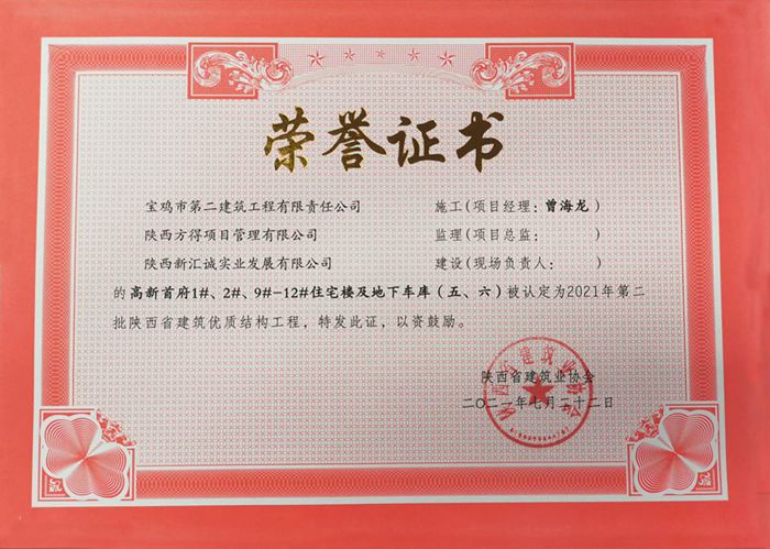 2021年度陜西省建筑優(yōu)質結構工程(高新首府1#、2#、9#-12#住宅樓及地下車庫)