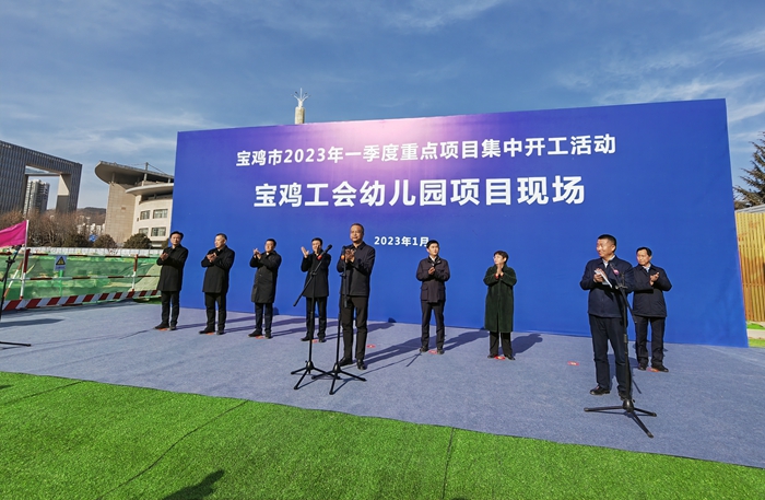 1月28日,寶雞市2023年一季度重點(diǎn)項(xiàng)目集中開(kāi)工活動(dòng)在集團(tuán)公司承建的寶雞市總工會(huì)幼兒園項(xiàng)目現(xiàn)場(chǎng)舉行,市委書(shū)記楊廣亭下達(dá)開(kāi)工令,市長(zhǎng)王勇、市人大常委會(huì)主任景耀平、市政協(xié)主席劉榮賢、市委副書(shū)記段小龍參加活動(dòng)。市委常委、常務(wù)副市長(zhǎng)賈珉亮主持開(kāi)工活動(dòng)。市人大常委會(huì)副主任、市總工會(huì)主席陳小平介紹項(xiàng)目情況。