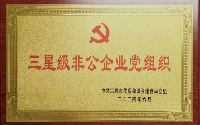 同時(shí),集團(tuán)公司黨委被寶雞市住房和城鄉(xiāng)建設(shè)局黨組命名為“三星級(jí)”黨組織。