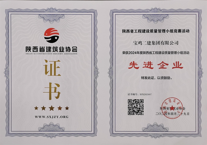 2024年度陜西省工程建設質量管理小組活動先進企業(yè)